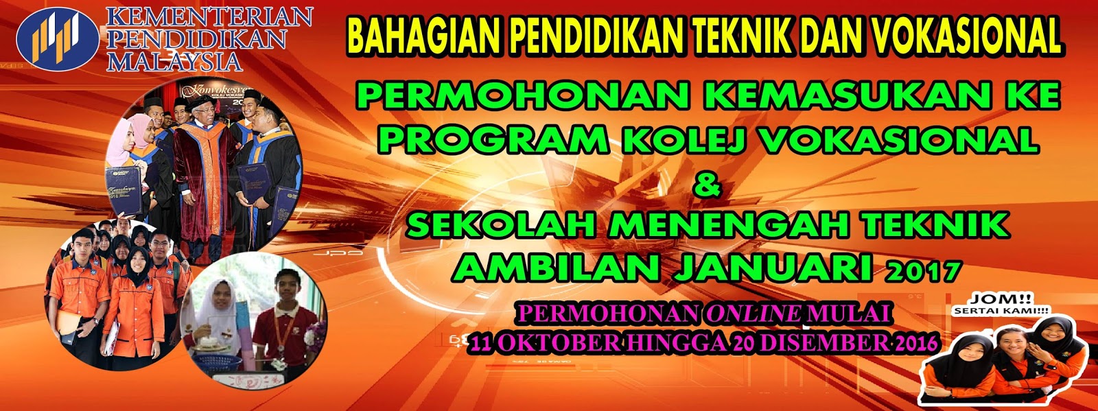 PERMOHONAN KE KOLEJ VOKASIONAL DAN SEKOLAH MENENGAH TEKNIK AMBILAN JANUARI 2017